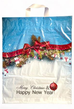 . Szalagfüles táska, 40x42 cm, "Merry Christmas"