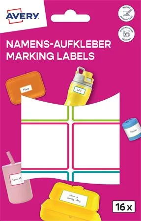 AVERY ZWECKFORM Címke, műanyag, iskolai, 46x33 mm, kézzel írható, AVERY ZWECKFORM, színes, 16 címke/csomag