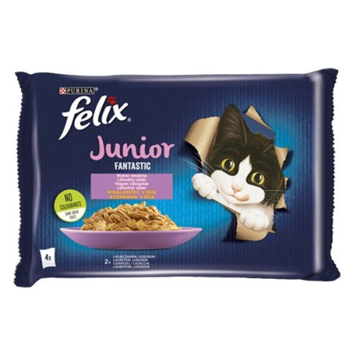 Állateledel alutasakos FELIX Fantastic Junior macskáknak csirke-lazac válogatás aszpikban 4x85 g