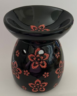 Aromalámpa fekete alapon virágokkal UTOLSÓ DARAB