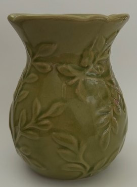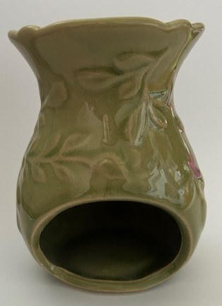 Kerámia aromalámpa, dombormintás, illóolaj tartóval a tetején.