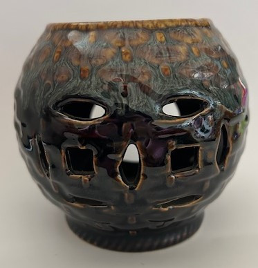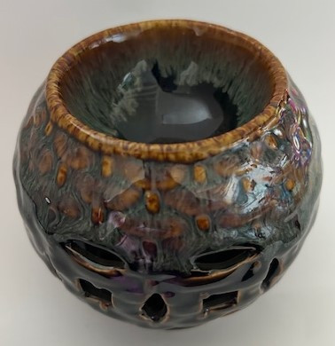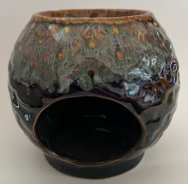 Kerámia aromalámpa, illóolaj tartóval a tetején.