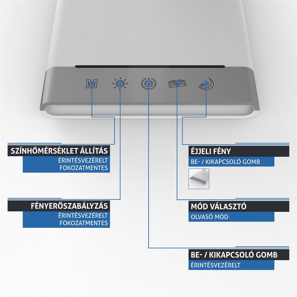 • 3 lépéses fényerőszabályzás, érintésérzékelő gomb
