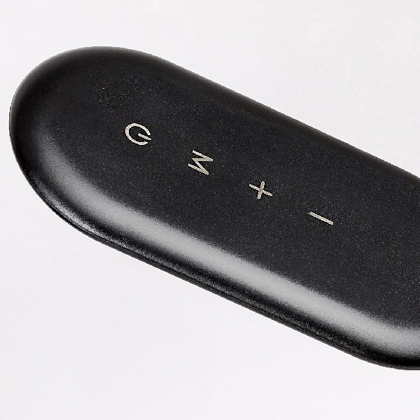 Az Adelmo asztali lámpa egyszerű, letisztult formatervezésének, valamint extra funkcióinak köszönhetően remek választás lehet bármely modern dolgozószoba íróasztalára. A fémből, fekete színben készült modellt karcsú, ívesen hajlított szár és egészen lapos kialakítású lámpafej jellemzi, amely oldalról szinte a szár egyenes meghosszabbításának tűnik. A lámpát fehér műanyagbúra és kerek dísztalp egészíti ki. Az Adelmo beépített LED fényforrással rendelkezik, amelynek a teljesítménye 10 W, élettartama pedig 20 000 óra. A lámpatest fényárama 910lm, a fényforrás fényárama 1000lm. A fényforrás színhőmérséklete érintőkapcsoló segítségével 3000–6000 K között tetszés szerint szabályozható, azaz a lámpa képes meleg, természetes vagy hideg fehér fénnyel világítani. Az asztali lámpa szélessége 360 mm, magassága 330 mm, a kábel hossza 1900 mm.