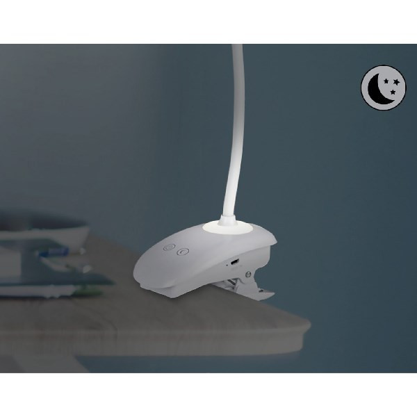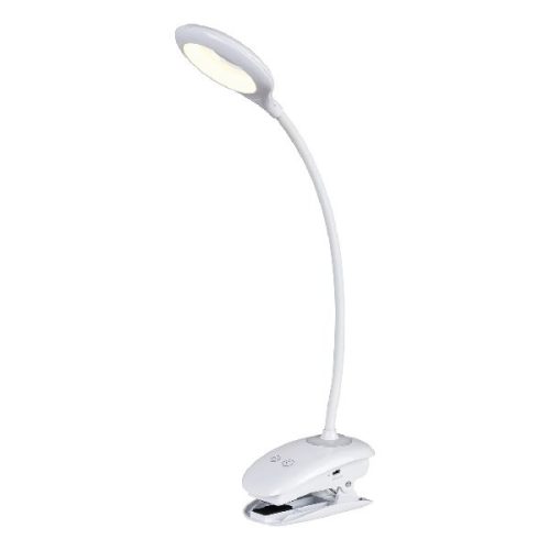 A letisztult stílusú Harris asztali lámpa egyszerű megjelenése különleges belsőt takar: a korong alakú fejjel készült, csiptetős modellt akkumulátorral is ellátták, így szabadon elhelyezhetjük bárhol a lakásban. A fehér színű, beépített LED fényforrással rendelkező lámpa színhőmérséklete 4000 K, ennek megfelelően természetes fehér fénnyel világít. A fényforrás teljesítménye 4 W, fényereje 180 lumen. A műanyagból készült Harrist elhelyezhetjük a nappaliban, a dolgozószobában vagy a gyerekszobában; bárhol, ahol írni, olvasni vagy éppen laptopozni szoktunk, és jól jön egy kiegészítő fényforrás. Az asztali lámpát érintőkapcsolóval látták el, amelynek segítségével dimmelhető is: a fényerőszabályozás három lépésben történhet. Ezenkívül a lámpa talpa éjjeli fény funkciót is rejt. A Harris asztali lámpa búrájának szélessége 60 mm, magassága 470 mm, a talp hossza 120 mm. A lámpára 5 év garanciát vállalunk.