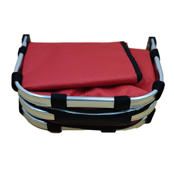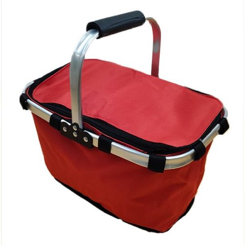 Összecsukható, fémvázas bevásárlókosár. Kosár mérete, nyitott állapotban: 40x25x23 cm, tömege 0,2 kg. teherbírása: 15 kg. Mosógépben nem mosható.
