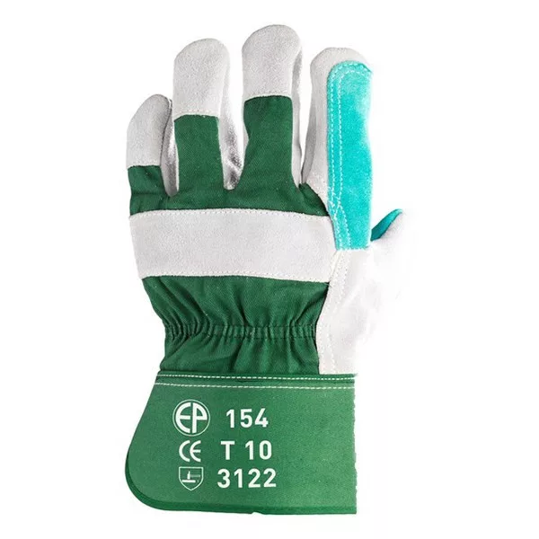 • zöld marhahasíték megerősítés a mutató- és hüvelykujjon, valamint a tenyéren