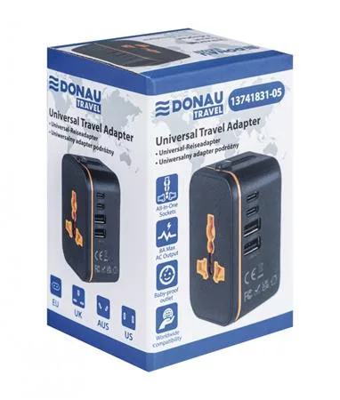 DONAU Utazóadapter, univerzális,  DONAU "Travel 205", fekete