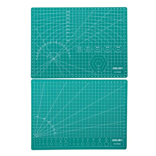 Önjavító dekoratőr tábla vágásálló betéttel Dekoratőr tábla masszív 5 rétegű kialakítással, vágásálló betéttel és öngyógyuló vágófelülettel. Jól látható vezetővonalak a vágandó anyag optimális pozicionálásához. Zöld színben