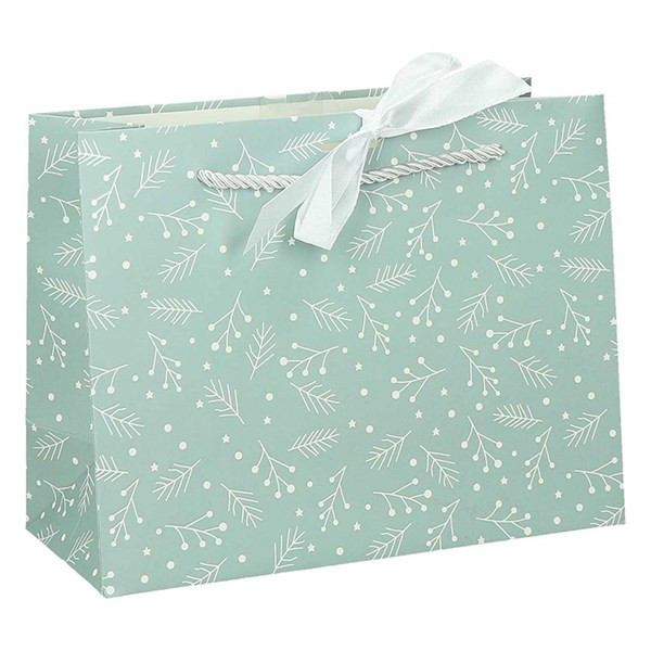 Dísztasak CREATIVE Deluxe Plus L 33x26x12 cm fekvő fagyöngy matt világoszöld sodort füles masnival