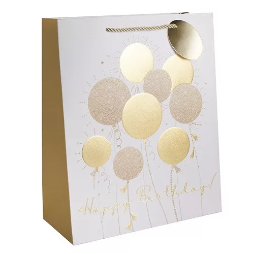 Dísztasak matt 11x14 cm arany lufik Happy Birthday! felirattal