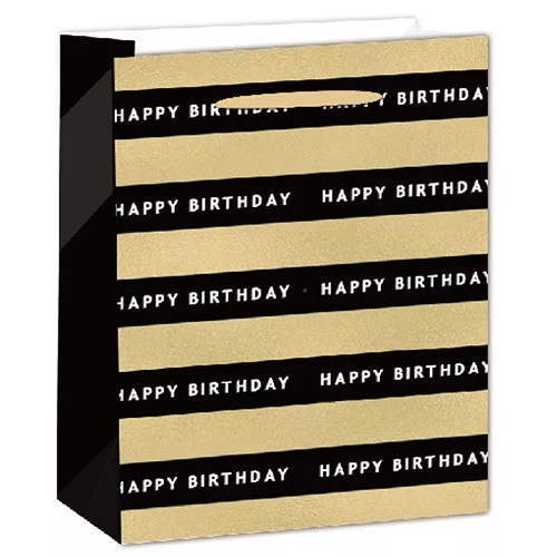 Dísztasak matt 11x14 cm fekete/arany Happy Birthday