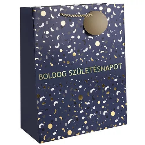 Dísztasak matt 11x14 cm kék/arany Boldog születésnapot felirattal