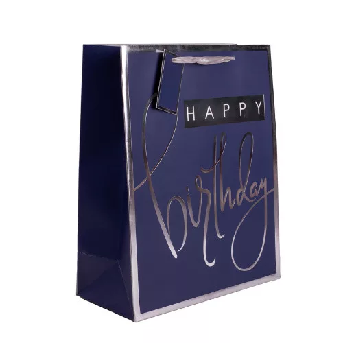 Dísztasak matt 18x23 cm kék ezüst Happy Birthday