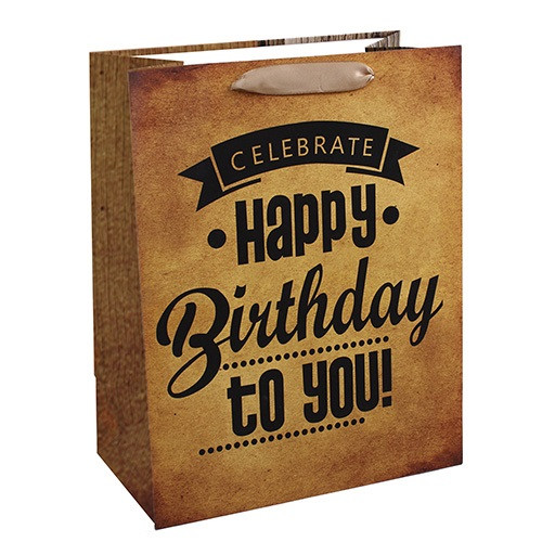 Dísztasak matt 26x32 cm barna Happy Birthday to you