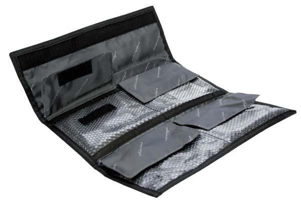 Négy darab, max. 82 mm-es szûrõ részére nyújt tárolási lehetõséget. A strapabíró külsõ anyag és a párnázat magasfokú védelmet biztosít, míg az átlátszó belsõ zsebek a beazonosíthatóságot segítik. A belsõ anyagon nehezebben tapad meg a por, ezzel is védve a tárolt szûrõk felületét.