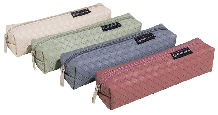 Fonott műbőrből készült tolltartó vegyes színekben.