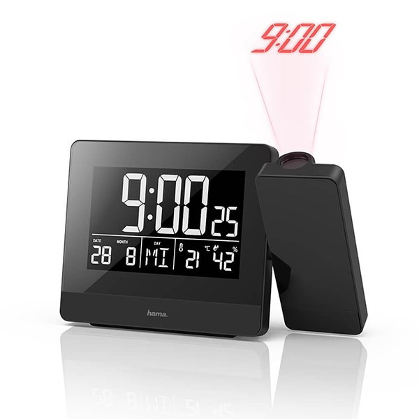 Digitális rádió vezérelt óra, hő és páratartalom méréssel 360 ° -os kivetítővel