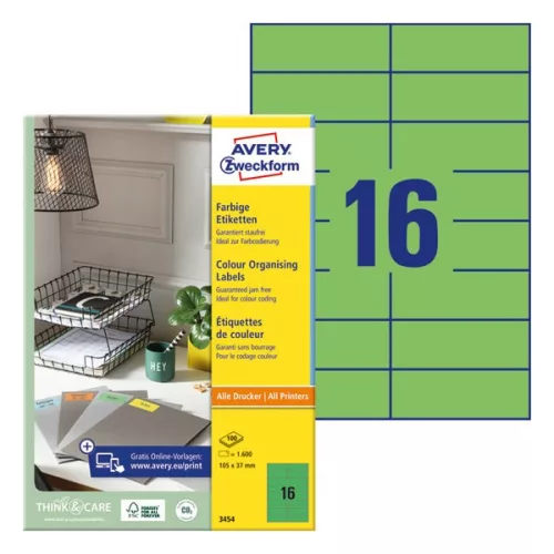Etikett AVERY 3454 105x37mm univerzális zöld 1600 címke/doboz 100 ív/doboz