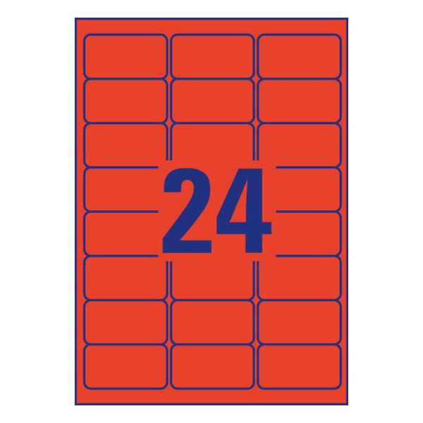 Etikett AVERY L6034-20 63,5x33,9mm univerzális piros 480 címke/doboz 20 ív/doboz