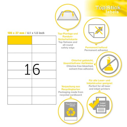 Etikett címke Topstick 105x37 mm szegély nélküli 100 ív 1600 db/doboz