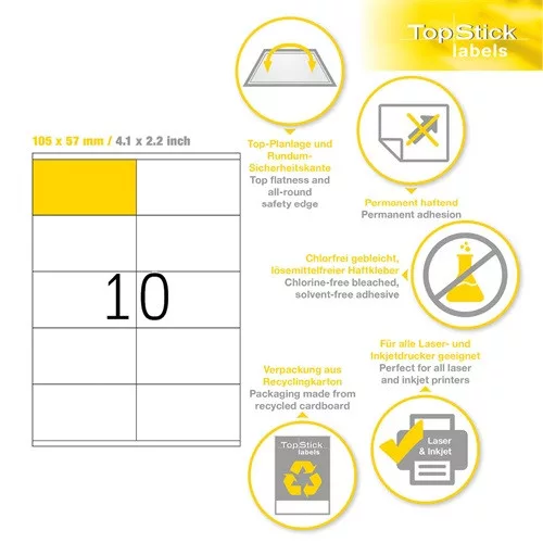 Etikett címke Topstick 105x57 mm szegéllyel 100 ív 1000 db/doboz