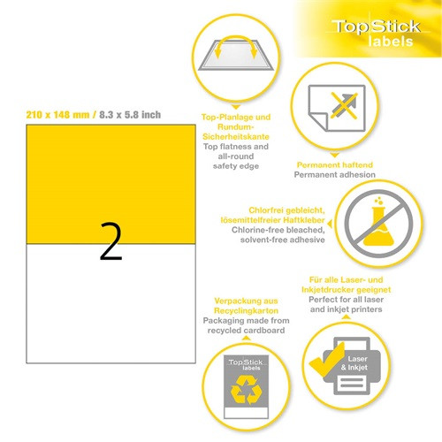 Etikett címke Topstick 210x148 mm szegély nélküli 100 ív 200 db/doboz