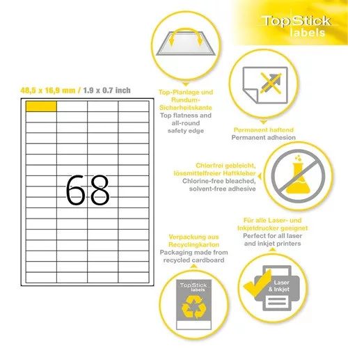 Etikett címke Topstick 48.5x16.9 mm szegéllyel 100 ív 6800 db/doboz