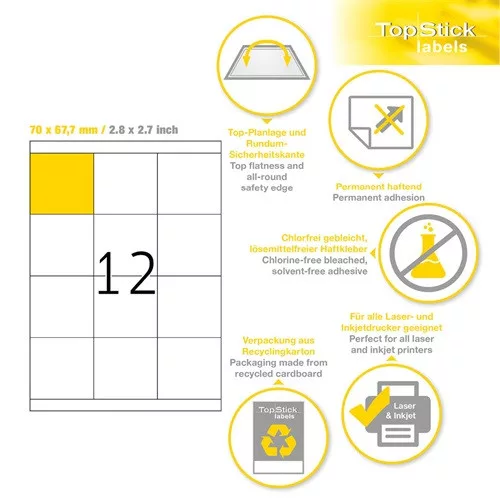 Etikett címke Topstick 70x67.7 mm szegéllyel 100 ív 1200 db/doboz