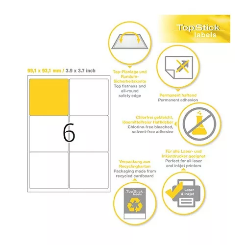 Etikett címke Topstick 99.1x93.1 mm szegéllyel 100 ív 600 db/doboz