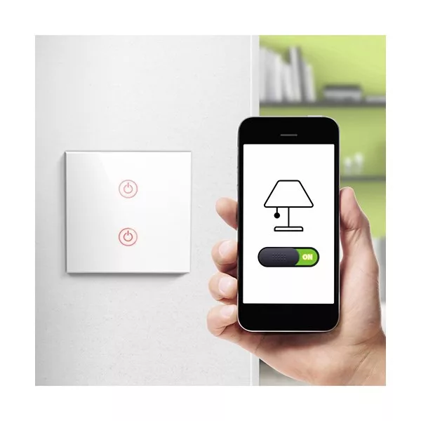 Kettős fali kapcsoló a mennyezeti lámpa kényelmes bekapcsolásához / kikapcsolásához manuálisan, vagy WiFi-n keresztül