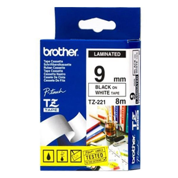 Feliratozó szalag BROTHER TZe-221 9mmx8m laminált fehér alapon fekete írásszín