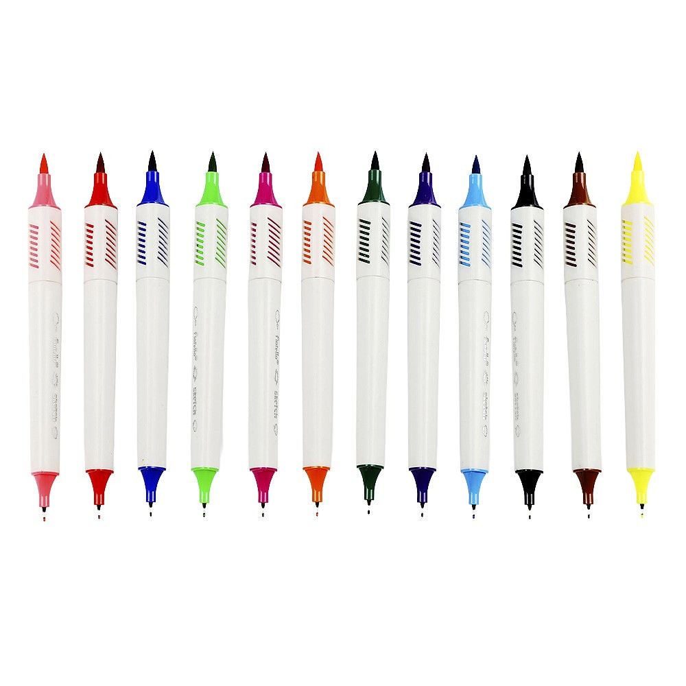 Kétvégű filctoll, melynek egyik vége tűfilc, míg a másik vége ecsetfilc. Készlet 12 darab színt tartalmaz. Lyukasztott biztonsági kupakkal.