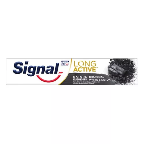 A Signal Long Active Nature Elements aktív szenet tartalmaz, mely tisztító tulajdonságáról ismert. Segít eltávolítani a foltokat és visszaállítani a fogak természetes fehérségét.