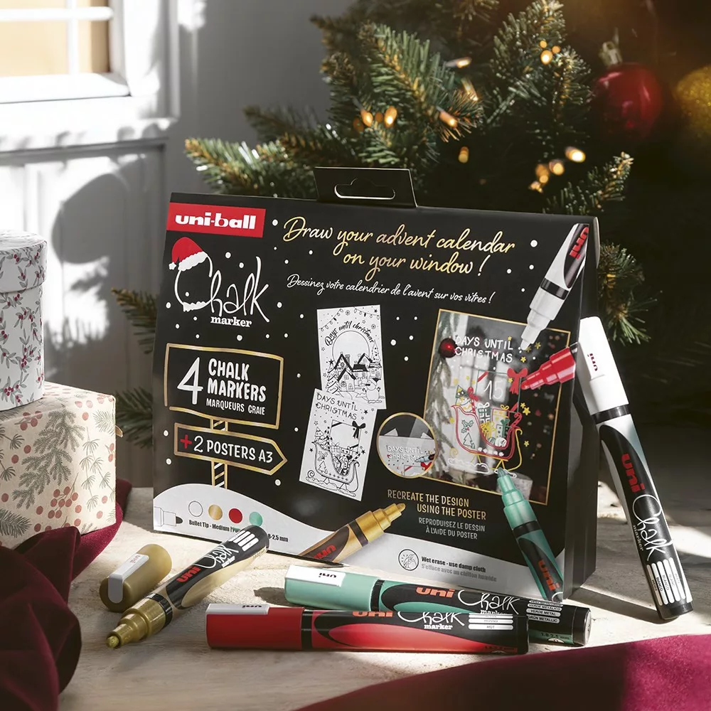 Folyékony kréta UNI PWE-5M Karácsonyi kiadás Tradicionális színek 4 darabos