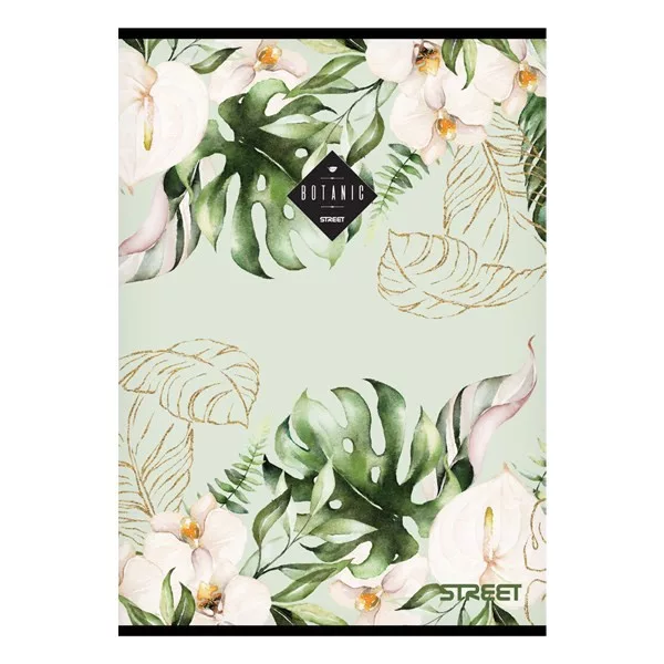 Virág és növény matt mintás, karton borítású, A/5 méretű, 54 lapos, kockás füzet.