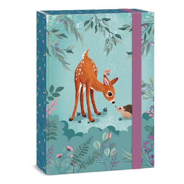 A/4 méretű füzetbox. Kemény, tartós kartonból, 4 cm-es gerinccel, fényes fóliával, 7 mm széles gumipánttal. Belseje egy színnel nyomott. Füzetek, iratok tárolására .