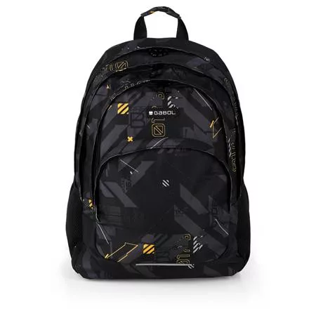 GABOL Hátizsák, iskolatáska, cipzáras, GABOL "Byte", fekete, geometrikus mintás