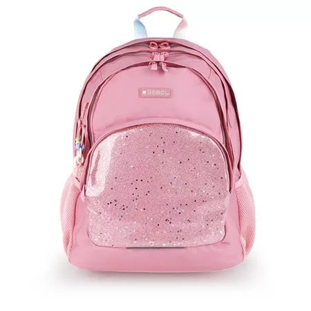 GABOL Hátizsák, iskolatáska, cipzáras, GABOL "Glam", rózsaszín csillámos