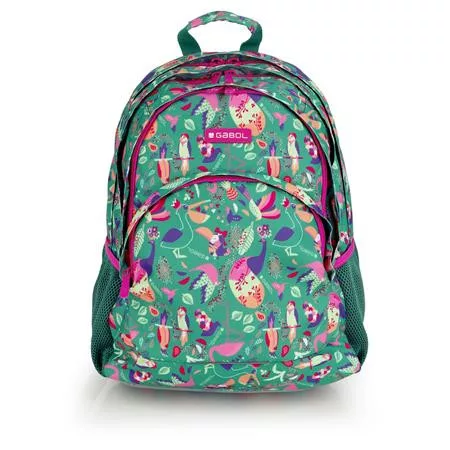 GABOL Hátizsák, iskolatáska, cipzáras, GABOL "Vida", zöld, trópusi mintás