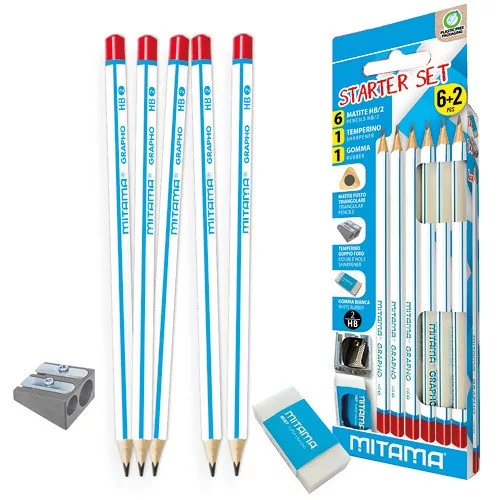 Grafitceruza Mitama, háromszögletű, radírral, 2 lyukú hegyezővel, 6 db-os klt.
