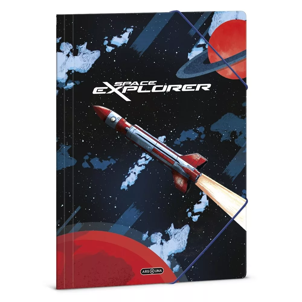 A/4 méretű gumis dosszié iratok, füzetek tárolására. 350 gr-os vastag kartonból készült dosszié lekerekített első sarkokkal, színes gumi zárópánttal. Külseje négy színnel, fényes fóliával nyomott. Belső oldala nyomatlan.