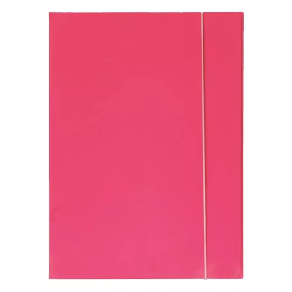 600 grammos kartonból készült, kívül vidám, neon színekre lakkozott, belül a borítóval azonos színű , gumis mappa 3 pólyával, hosszanti oldalán gumiszalaggal ellátva. A gumiszalag színe megegyezik a mappa színével. Kisebb mennyiségű papír tárolására alkalmas.