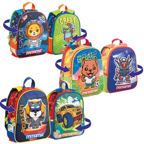 Fedezze fel a MITAMA óvodás hátizsákok színes és játékos világát, amelyek kifejezetten az óvodás korosztály számára lettek tervezve. Minden hátizsák egyedi grafikával van díszítve, így nemcsak funkcionálisak, hanem szórakoztatóak is. A hátizsák elején és hátulján más-más minta található, és a vállpántok átforgatásával így valójában 2 féle táskát kapunk.