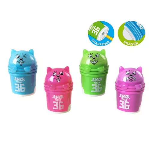 Hegyező Junior Cicás, radírral, vegyes színekben
