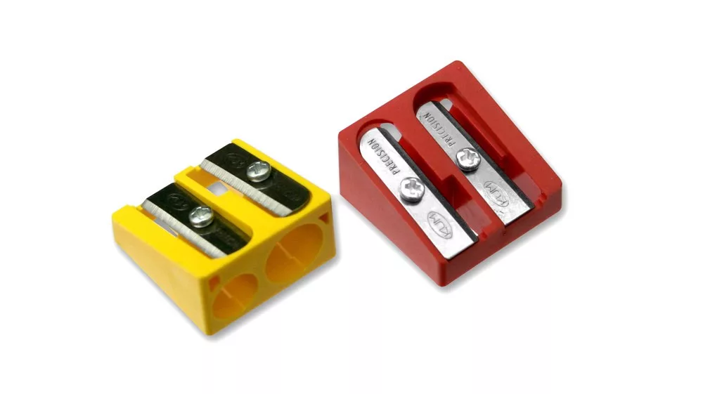 3 lyukú műanyag hegyező, normál, vastag grafit- és színes ceruza hegyezéséhez.