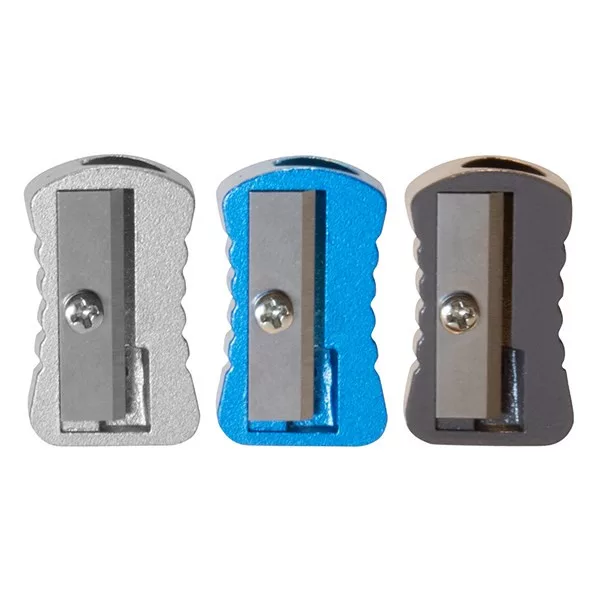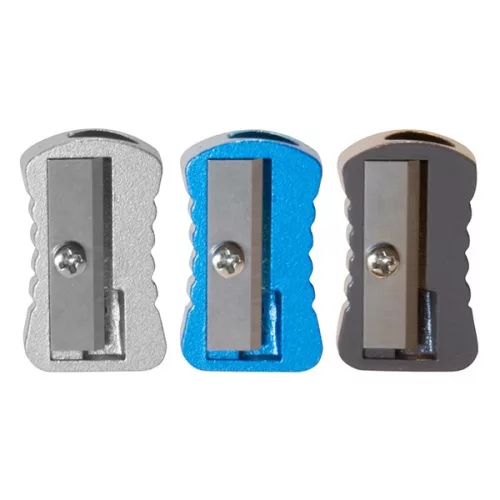 Kiváló minőségű fém hegyező normál ceruzához és zsírkrétához. A fém testnek köszönhetően a penge tökéletesen stabil, éle sima, precíz és megbízható hegyezést biztosít. Rendkívül strapabíró és kényelmesen megfogható testének oldala barázdált a csúszásmentes fogás érdekében.