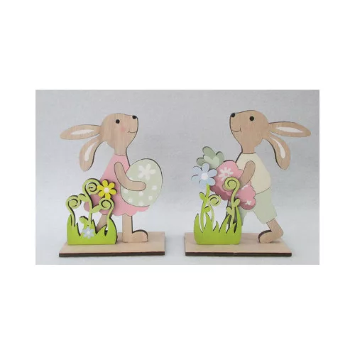 Húsvéti dekor fa álló nyuszi tojással 15 cm 2 féle