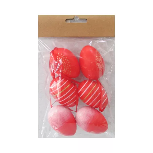 Húsvéti tojásdekoráció piros mintás 6 db/csomag