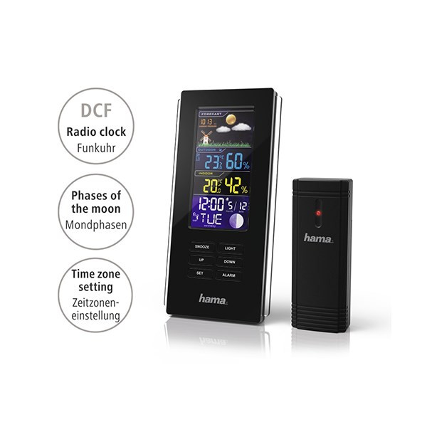 Időjárás állomás HAMA Color Edge színes kijelzővel fekete